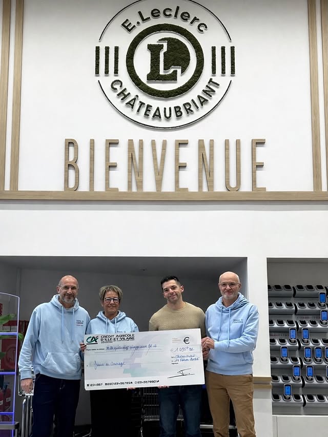Samedi 14 février 2026, le centre Leclerc des Chateaubriant a symboliquement transformé la générosité de ses clients en soutien concret pour l’association Graine de Courage. Grâce à l’opération « Arrondi solidaire », les quelques centimes abandonnés en caisse par les consommateurs ont permis de récolter un chèque de 1 000 euros, remis officiellement au président de l’association.